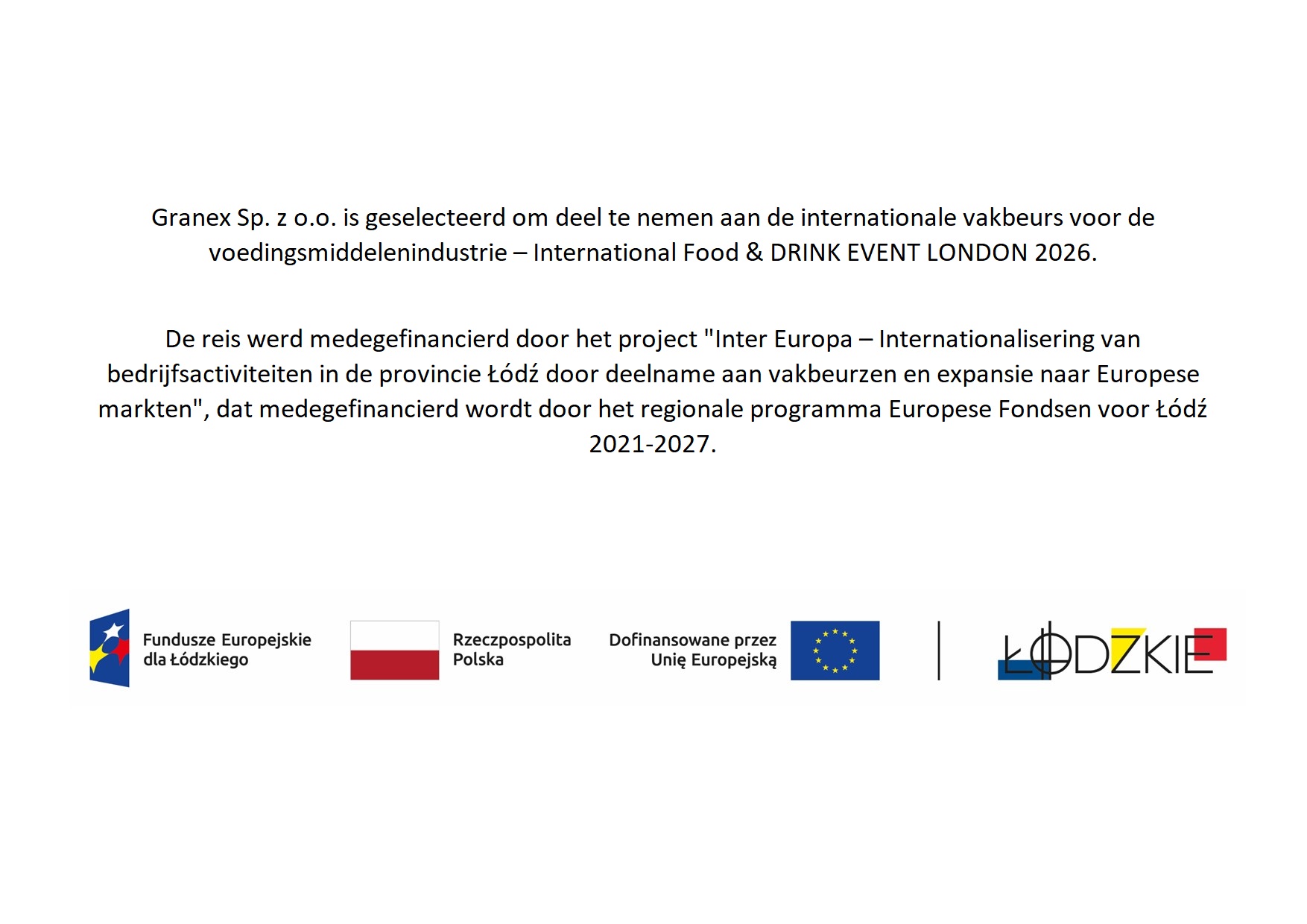 Granex implementeert in het kader van het Regionale Operationele Programma van het woiwodeschap Łódź voor de jaren 2014 – 2020 Prioriteitsas II: Innovatieve en concurrerende economie, Maatregel: II.2: Internationalisering van ondernemingen, Submaatregel: II.2.1: MKB-bedrijfsmodellen, het project met de titel “Ontwikkeling van een strategie om buitenlandse markten te veroveren als instrument voor bedrijfsontwikkeling.”