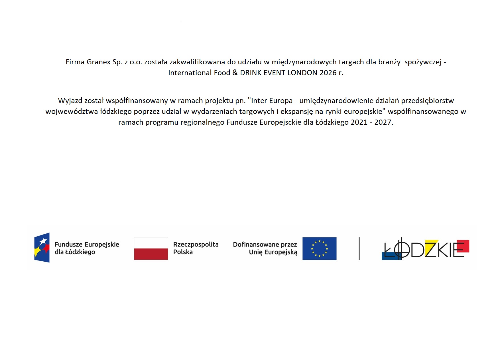 Produkty ze znakiem firmy GRANEX to artykuły spożywcze o wysokim standardzie. Są całkowicie naturalne, wytwarzane bez użycia sztucznych dodatków – spulchniaczy, ulepszaczy, barwników i środków konserwujących. Produkowane według najnowszej technologii z pełnych ziaren zbóż, charakteryzują się doskonałymi właściwościami odżywczymi. Zawierają duże ilości, węglowodanów, minerałów, witamin, a przede wszystkim – błonnika pokarmowego. Dzięki wysokim walorom smakowym i dietetycznym są idealnym pożywieniem dla osób dbających o zdrowie, smukłą sylwetkę i dobre samopoczucie.